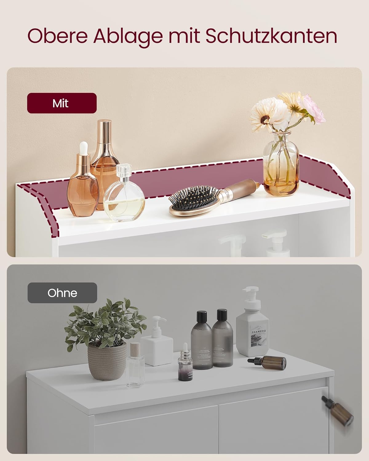 Kunden schätzen die kompakte Größe des SONGMICS Badezimmerschranks, die ihn ideal für kleine Räume macht. Besonders beliebt sind die zwei offenen Ablagen, die schnellen Zugriff auf häufig verwendete Toilettenartikel ermöglichen. Die höhenverstellbaren Einlegeböden bieten Flexibilität für verschiedene Aufbewahrungsbedürfnisse. Zudem sorgen die Schutzkante und der Kippschutz für Sicherheit und Stabilität. Das schlichte, wolkenweiße Design verleiht jedem Raum einen stilvollen Akzent, was die Kunden begeistert.