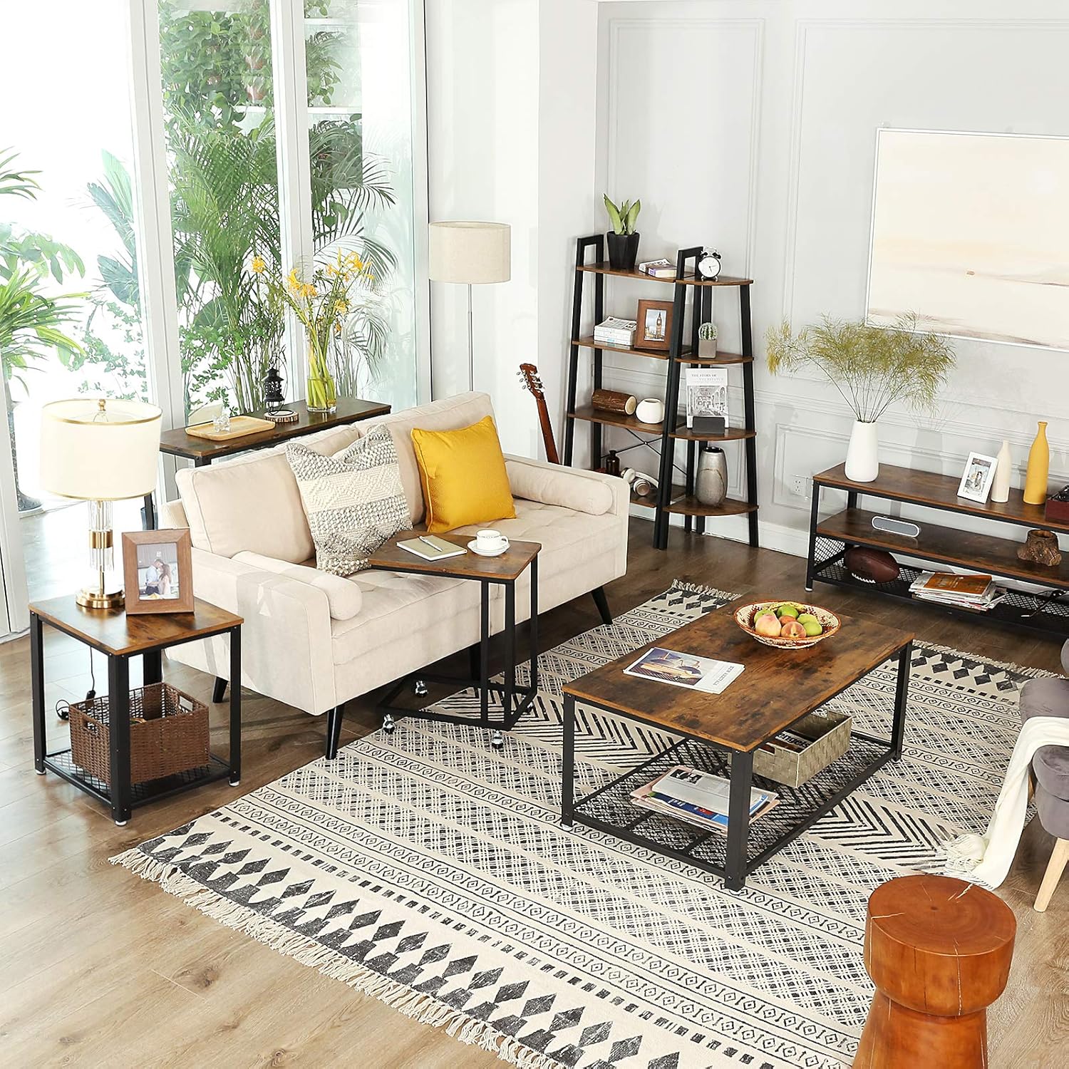 Entdecken Sie den SONGMICS Beistelltisch im angesagten Industrie-Design – die perfekte Ergänzung für Ihr Wohnzimmer oder Schlafzimmer! Mit seiner vintagebraunen Tischoberfläche und dem robusten schwarzen Stahlgestell bringt dieser Tisch nicht nur Stil, sondern auch Funktionalität in Ihr Zuhause. Das auffällige Gitterelement verleiht dem Tisch einen einzigartigen Charakter und macht ihn zum Blickfang in jedem Raum. Die hochwertige Verarbeitung aus Spanplatte und das solide Metallgestell sorgen für eine robuste Konstruktion, die Ihren Bedürfnissen gerecht wird. Mit einer Tischoberfläche, die bis zu 20 kg belastbar ist, und einer Gitterablage, die bis zu 15 kg trägt, bietet dieser Tisch ausreichend Platz für Ihre Lieblingsbücher, Snacks oder Dekorationen. Die 4,2 cm breiten Beinrohre sind stabiler als die herkömmlichen 3 oder 3,5 cm breiten Varianten und garantieren einen sicheren Stand. Die Montage ist kinderleicht! Dank der bebilderten Anleitung und der klar gekennzeichneten Einzelteile können Sie den Nachttisch im Handumdrehen aufbauen. Und mit den verstellbaren Standfüssen gehören wackelige Möbel der Vergangenheit an – sie gleichen Unebenheiten im Boden aus und sorgen für einen stabilen Stand. Mit dem SONGMICS Beistelltisch aus der BRYCE-Kollektion erhalten Sie nicht nur ein funktionales Möbelstück, sondern auch eine stilvolle Möglichkeit, Ihr Zuhause auf das nächste Level zu bringen. Verleihen Sie Ihrem Raum einen Hauch von Industrie-Charme und geniessen Sie die Kombination aus Design und Stabilität!