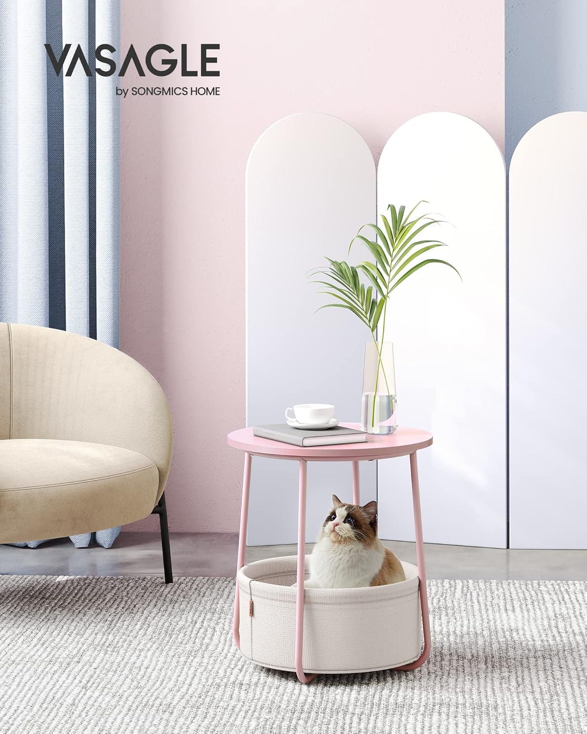 Beistelltisch rund mit Stauraum pastellrosa