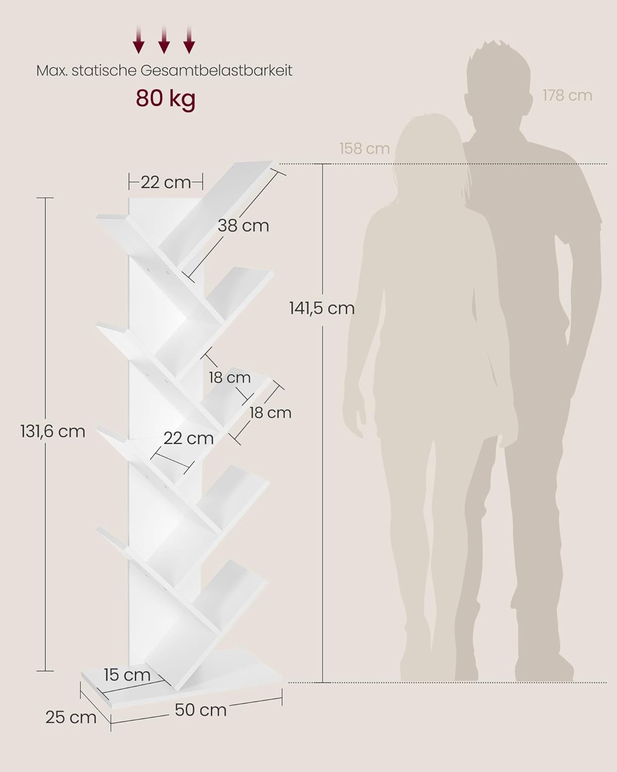 Kunden sind begeistert von der einzigartigen Baumform und dem stilvollen Design, das sofort Atmosphäre ins Zuhause bringt. Besonders geschätzt werden das platzsparende Eckkonzept mit 9 Ebenen, die robuste Bauweise mit Kippschutz, die einfache, werkzeugfreie Montage sowie die pflegeleichte, langlebige Oberfläche.